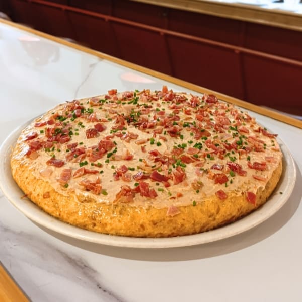 El producto estrella de Cafetería Rua es su tortilla de patatas, reconocida por su textura jugosa y el equilibrio perfecto entre patata y cebolla caramelizada. Cada porción refleja un proceso cuidadoso, con trocitos pequeños de patata integrados en huevo batido, que, junto a un sutil sofrito de cebolla, ofrece un sabor auténtico y casero. Una delicia que se puede disfrutar sola, acompañada de pan recién hecho, o integrada en propuestas como el vegetal de tortilla francesa, jamón y queso.