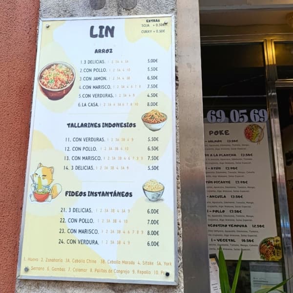 Situado en la Calle Santa Lucía 5, Lin Wok (también conocido como Lin Ramen) se presenta como una opción ágil, asequible y sabrosa para quienes buscan comida de estilo asiático‑fusión con opciones para llevar o a domicilio. El establecimiento ofrece un ambiente informal, adaptado tanto al take‑away como al pedido online, lo que lo convierte en una alternativa práctica para almuerzos rápidos o cenas relajadas.