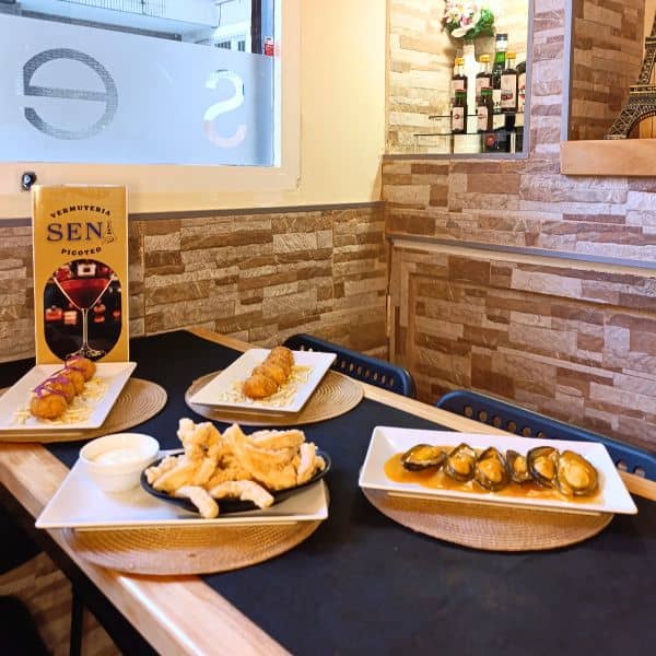 La oferta gastronómica de Sena gira en torno al concepto de tapeo y raciones, con platos pensados para compartir. Opciones sencillas, reconocibles y bien ejecutadas, que encajan perfectamente con el formato de vermutería.